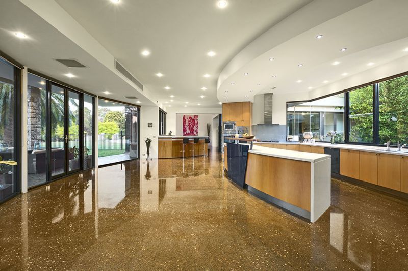 This extraordinary residence enjoys an abundance of natural light through dramatic floor to ceiling windows providing undisturbed country views and enhancing the sense of indoor-outdoor transition. Double doors open out onto a large timber entertaining area surrounded by striking palms and overlooking the solar heated pool and spa. At the far end of the pool a newly constructed self-contained guest/pool house allows friends and family to visit in comfort and utilise the bedroom, living/entertaining area featuring exceptional parquetry floor design, kitchenette, powder room and bathroom with exquisite marble flooring. Perhaps the only problem would be getting visitors to leave!