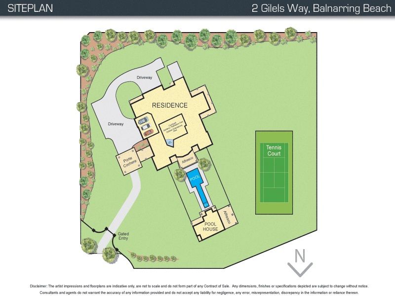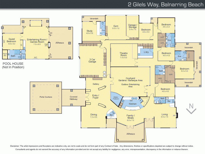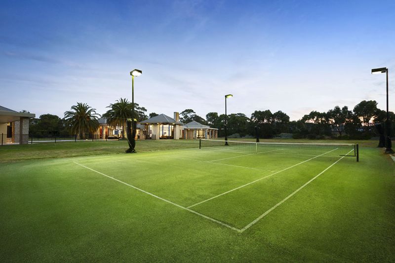 The stunning main house offers five generously proportioned bedrooms, four with WIR's and designer ensuites, with the truly lavish master bedroom enjoying a double shower and sauna, creating the ultimate parents retreat. The family and dining rooms with spectacular cathedral ceilings, stylish modern kitchen with walk in pantry and stainless steel appliances, huge home cinema, personal gym and grass tennis court give everyone space to carry out various activities at the one time as well as areas for everyone to spend time together. A spacious home office with kitchenette, bathroom and external entrance also allows this home to cater for business needs.