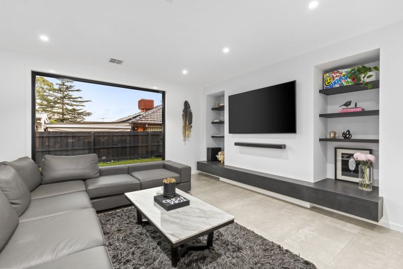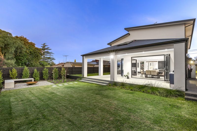 Showcasing bold contemporary design and expansive north facing open plan living and entertaining areas, this newly built family residence presents unparalleled luxury throughout, with an enviable master retreat, home theatre and impressive Smeg-equipped kitchen.