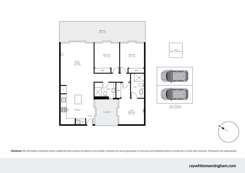 Back inside, all bedrooms are relaxed and welcoming, including the master bedroom which delivers excellent storage options and a sublime ensuite. The master bedroom and kitchen are separated by a brilliant courtyard which adds amazing versatility to the floorplan! Other property features include a stylish bathroom, European laundry, reverse cycle heating and cooling, secure video intercom, storage cage, and 2 secure car spaces.