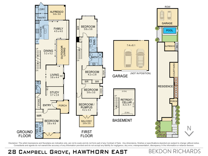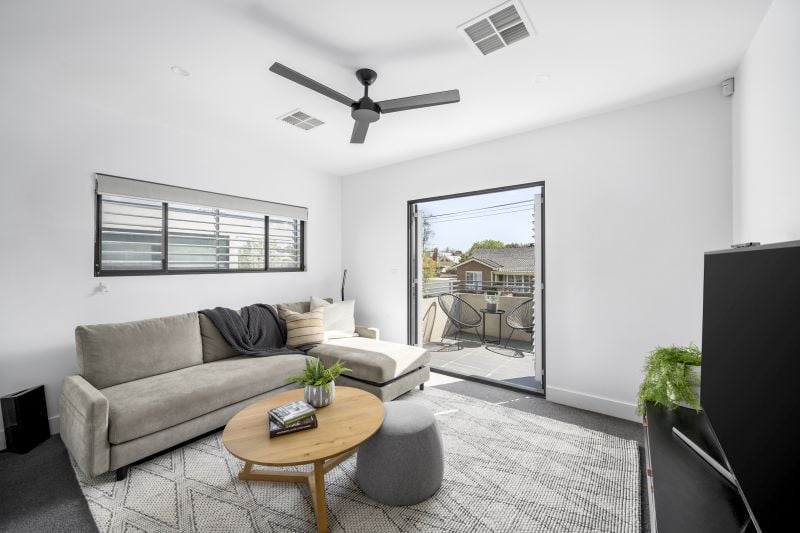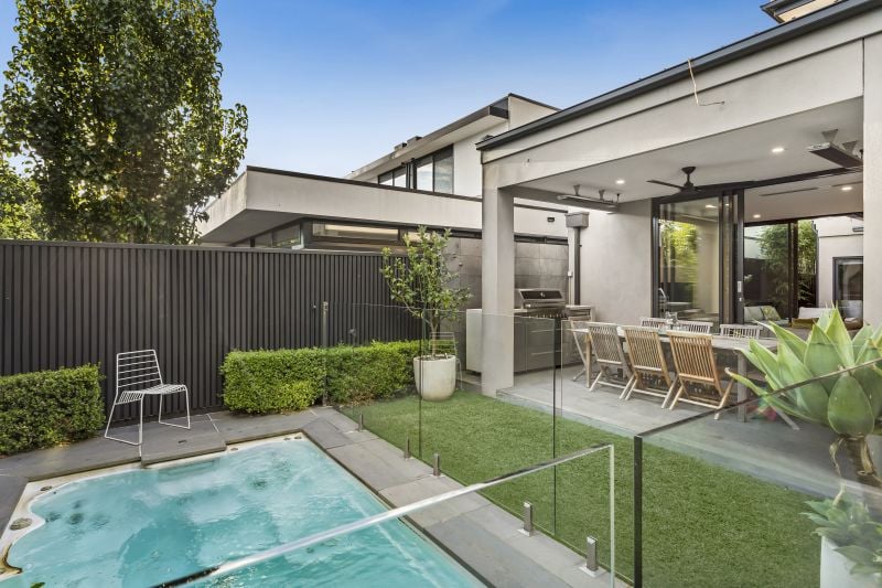 Enter the backyard from the covered alfresco area with ceiling fans and heating can be used in all seasons, while a sizeable, heated swim spa and 2nd separate courtyard complete the alfresco features. You also get to enjoy a downstairs powder room, laundry, fitted storeroom, reverse cycle ducted heating and cooling, ducted vacuum, security alarm, security gate with intercom and electronic keyless entry, , and a generous double remote garage with workshop area accessed via a laneway.