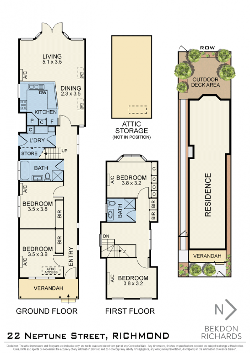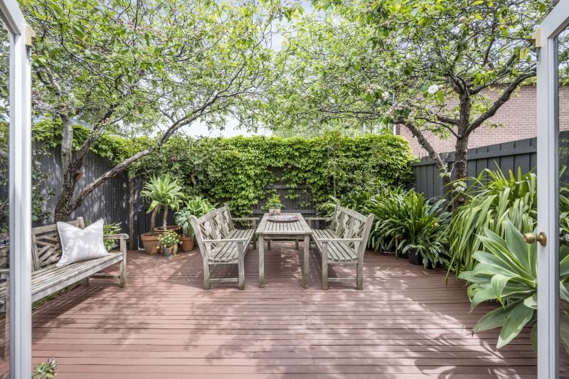 This property also features a downstairs bathroom, sensational attic storage accessed from the front bedroom, laundry, reverse cycle heating and cooling throughout, under floor slab heating, and the stunning west-facing back deck and garden with amazing privacy as well as gate access to a ROW. There is the potential to convert all or part of this back deck to off-street parking thanks to the ROW access.