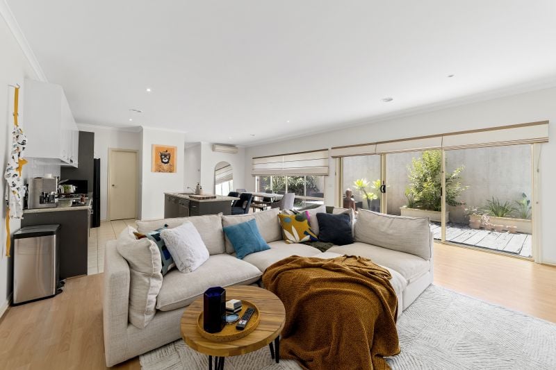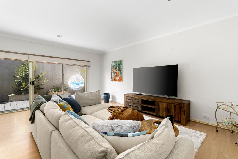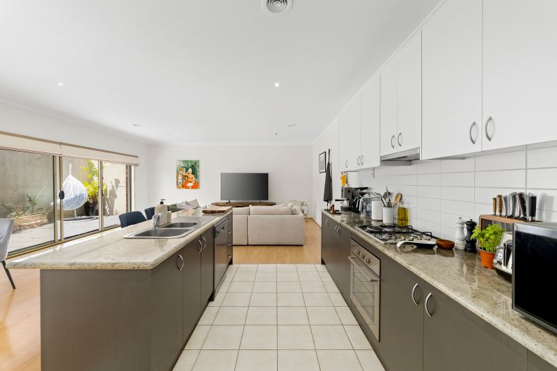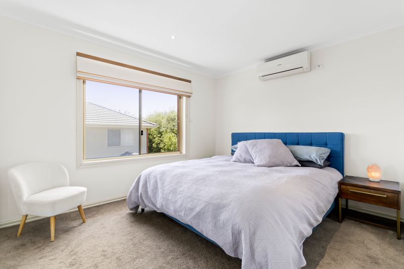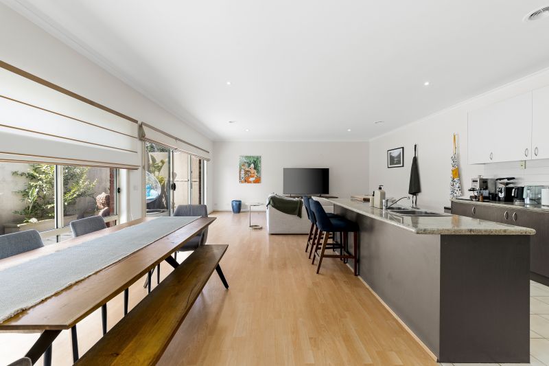 Sitting at the rear of a boutique development, set back from the street in a quiet position, the home features an expansive living/dining area, whose flexible space opens out to a gorgeous private deck and entertaining area. The deluxe kitchen showcases stainless steel appliances (oven, gas cooktop, dishwasher), walk-in pantry, ample cupboards, and central island bench with breakfast bar seating. Ascend to the first floor and discover a primary bedroom with mirrored built-in robes and shower ensuite, a second bedroom with mirrored robes, and a gleaming central bathroom with shower. Additional features include separate laundry, downstairs powder room, split-system heating/cooling throughout, water tank, double garage.