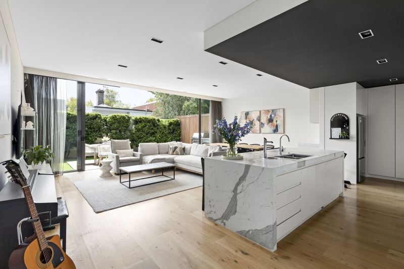 The heart of the home is the open-plan kitchen and living area, which is an ideal configuration for those who love to entertain.