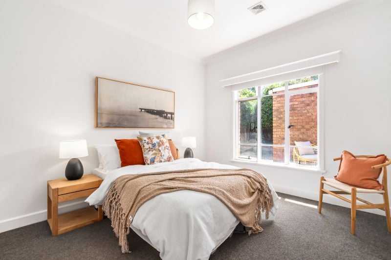 The sunny kitchen is open plan and functional and offers stainless steel appliances including a Bosch dishwasher, whilst outside is a very private, expansive north-facing yard ideal for outdoor entertaining.