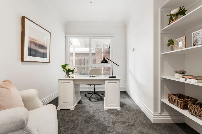 Three genuine bedrooms and a family bathroom are positioned upstairs, including the master with ensuite and walk-in robe. A ground-floor study gives families flexibility and could be used as an additional bedroom if needed.