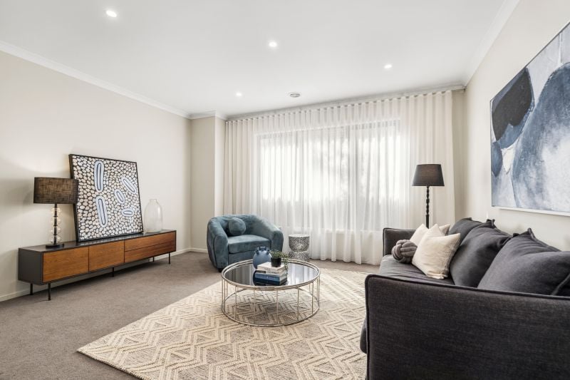 Ducted heating and evaporative cooling keep the interiors comfortable all year long - the corner-sited home also features a gas pebble fireplace, ground-floor guest bathroom, keypad entry, huge laundry, under-stair storage, water tank and double auto garage.