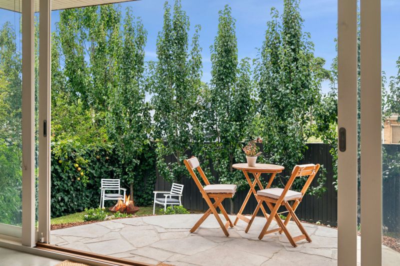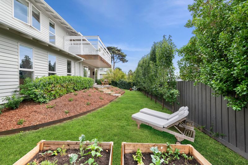 Parking for four cars plus a private rear yard, ideal for an open fire pit or lounging in the sun. Engineered oak floors, porcelain tiles, and ceiling fans for year-round comfort.