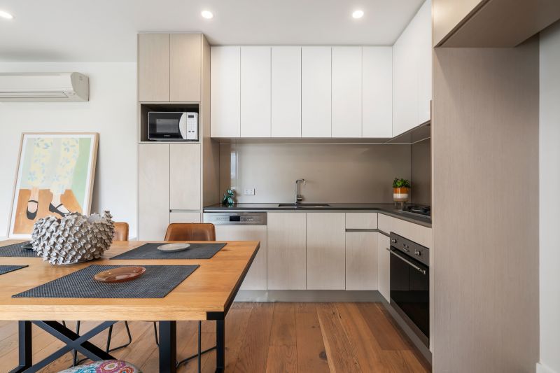 Among its standout features are an open plan living/dining zone and tree-top view balcony along with a sophisticated gourmet kitchen with stone surfaces and premium Smeg appliances, including gas cooking.