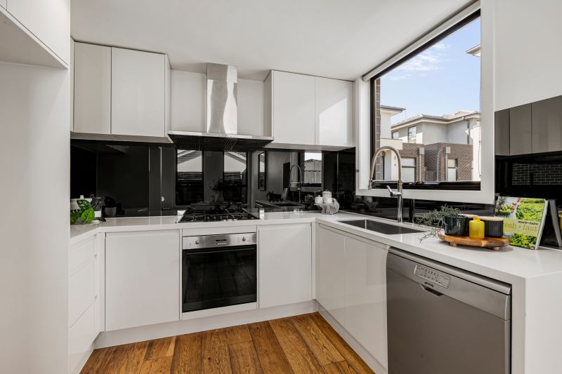 Downsizers will appreciate the optional ground floor main bedroom which benefits from ample fitted wardrobes along with a designer ensuite, while the primary bedroom upstairs triumphs with a luxe bathroom and a generous walk-in wardrobe. A third bedroom and additional bathroom ensures no one is left out, while the second living area on this level could be an ideal study/TV zone as needed. With the comfort of ducted heating/cooling, this sophisticated setting offers a guest powder room, very practical Euro laundry with stone benchtop & storage plus a garden shed and internal entry into a huge double auto garage.