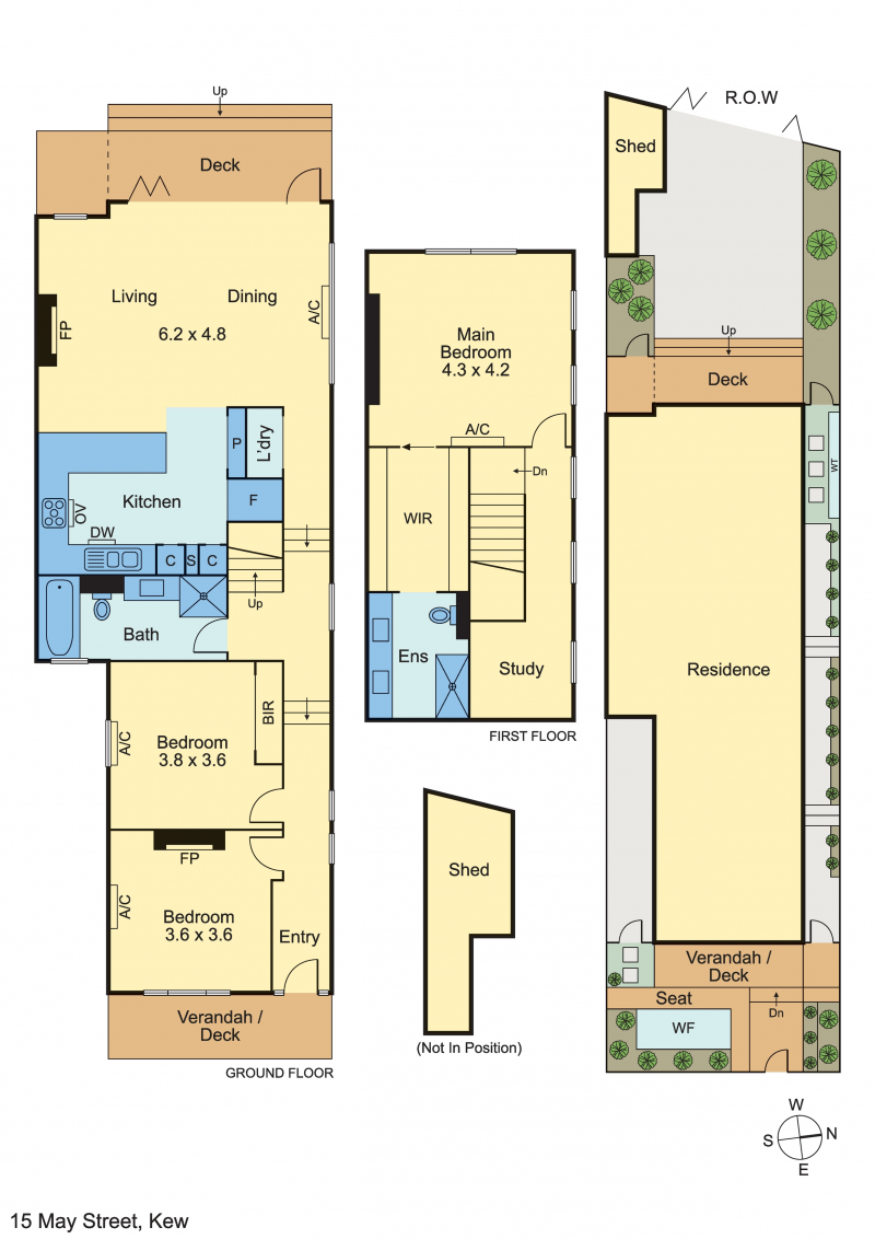 A gas fireplace and multiple split systems are among the creature comforts, and the home also boasts a European-style laundry, storage shed and off-street parking with rear ROW access.