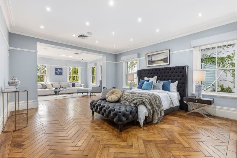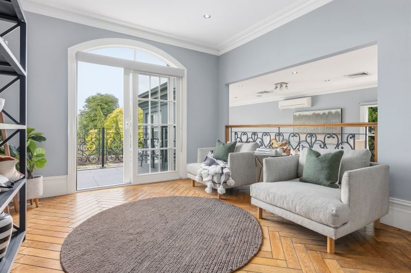 Back inside, a sweeping Hollywood-style leads to four of the five bedrooms, including the truly decadent primary suite. With a lounge and study area, kitchenette, large walk-in robe, lavish ensuite and private street-view balcony this really is a sanctuary in every sense, and a space parents will love retreating to at the end of the working day.