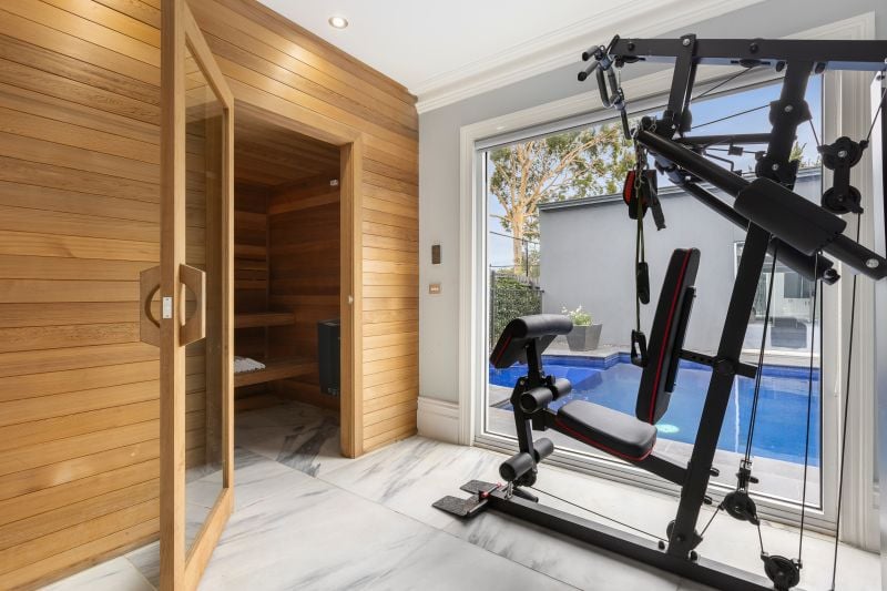Enhanced by marble, wrought-iron and timber accents throughout, the home also comes with a sauna (and outdoor powder room), multi-zoned ducted heating and refrigerated cooling, split systems, ducted vacuum, 12.54kw solar panel system with 38 x 330 watt panels, a cocktail bar with wine rack, CCTV/security, guest powder room, huge laundry, second staircase and over-sized double auto garage with EV charger - all with the added peace of mind of remote-controlled gates.