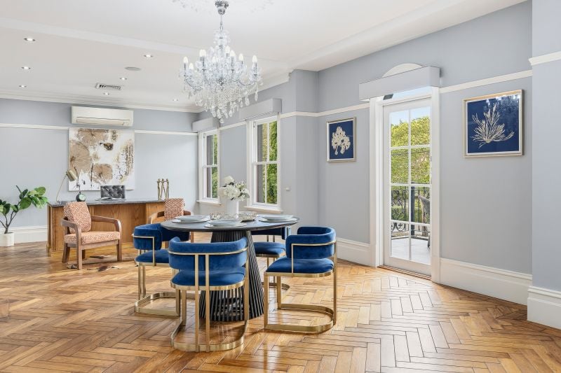Commanding attention from the street with its timelessly elegant façade & manicured front garden, the interiors are where the property's high calibre is truly revealed. Upon entry, a grand foyer with chandelier welcomes guests, before leading to a trio of expansive formal living/dining areas. Further on, discover a vast open plan living/dining zone and entertainer's kitchen, which impresses with its scale, freestanding Glem oven, Asko dishwasher and ample storage.
