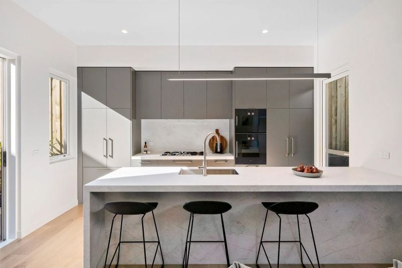 Absolutely no expense has been spared, prioritising high end finishes, LED sensor lighting, zoned heating/cooling, soaring ceilings, and engineered oaks floors throughout. North facing living zones and dining domain, both opening out to lush gardens overlooking leafy streetscapes.